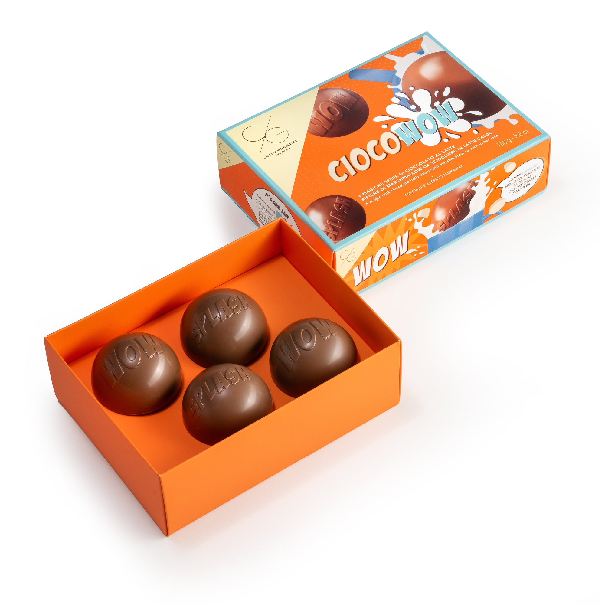 CG Cioccolato Gourmet, con la sua rinomata tradizione nell'arte cioccolatiera, è orgogliosa di presentare la sua ultima perla di gusto: il CIOCOWOW. Questa creazione non è solo un tributo al cioccolato, ma rappresenta l'essenza della maestria dolciaria che ha reso celebre il marchio nel panorama internazionale. Dentro ogni scatola di CIOCOWOW, ti aspettano 4 sfere di prelibato cioccolato al latte, minuziosamente confezionate e generosamente riempite di soffice marshmallow. Ma la vera magia si manifesta non quando le ammiri, né quando ne assapori l'aroma, bensì quando le lasci sciogliere in una tazza di latte caldo. In un batter d'occhio, le sfere si fondono, rilasciando la loro cremosa essenza e trasformando il tuo latte in un vero e proprio capolavoro di sapore. Resistere al fascino travolgente delle Ciocowow è un'impresa. Ma come godersi al meglio questa delizia? È semplicissimo: immergile in latte caldo e lasciati travolgere dall’esplosione di gusto! La perfetta alchimia tra il cioccolato al latte e il marshmallow crea un'esperienza che solletica i sensi, rendendo ogni momento di degustazione indimenticabile. L'aspetto raffinato di CIOCOWOW, con la sua confezione elegante e sofisticata, lo rende il dono ideale per ogni occasione, che si tratti di una celebrazione speciale o di un momento di pura indulgenza personale. Con CIOCOWOW, CG Cioccolato Gourmet ti invita a un viaggio gustativo che abbraccia la modernità mantenendo viva la tradizione, combinando lusso e quotidianità, e celebrando una passione ineguagliabile per il cioccolato. Lasciati guidare in questa avventura e riscopri la magia del cioccolato in tutte le sue sfumature. Conservare in luogo fresco e asciutto, al riparo dalla luce e da fonti di calore.
