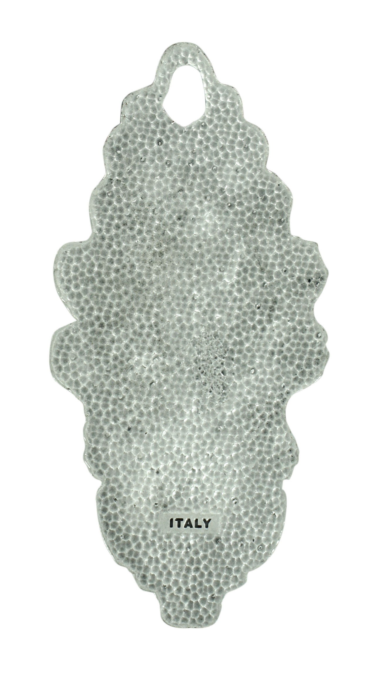 L'acquasantiera che misura cm 20,5 è in metallo argentato brunito. Al centro di essa vi è un medaglione in resina rappresentante la Sacra Famiglia: Gesù Bambino, Giuseppe e Maria.Realizzato in Italia.