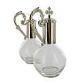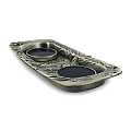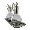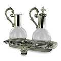 Ampolline in vetro capienza di 100 cc. su vassoio fusione in peltro nichel. Le ampolline restano ancorate al vassoio grazie alla base magnetica, che permette alle ampolle di non rovesciarsi neanche in caso di capovolgimento del piatto. Sul vassoio sono incisi i simboli eucaristicii della vite e del pesce e vi è una croce in rilievo smaltata rossa. Prodotto in Italia.Disponibile anche in peltro dorato, codice articolo 4509CA