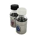 Coppia di bottiglie acqua e vino con corazza. Altezza pari a 9 cm, diametro 3 cm, capienza 30 cc. Realizzato in Italia.