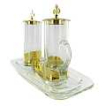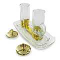 Servizio di Ampolline per Messa con Vassoio, Vetro Style e Base Dorata, 100 Cc