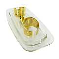 Ampolline in vetro Style capienza di 100 cc. con vassoio in vetro e base in ottone dorato. Le ampolline restano ferme sul vassoio perché inserite in una base cilindrica di ottone dorato. È compresa una ampolla di ricambio. Prodotto in Italia