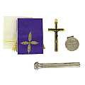 Bustina per Celebrazione Messa in pelle con 5 oggetti.Dimensioni della valigia: 9x11x12 cm.Realizzato in Italia.