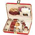 Valigia per celebrazioni: Servizio da messa completo con 16 oggetti. Dimensioni: 14 x 21 x 5 cm. In dimensioni ridottissime, una praticità incredibile in viaggio. Completo di Viatici, calice componibile di capacità eccellente, scatolina per particole e patena. Realizzato in Italia.