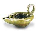 Lampada ad olio in terracotta smaltata.Misure della lucerna: 15 cm di larghezza per 16 cm d'altezza. Realizzato in Italia.