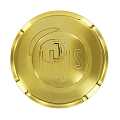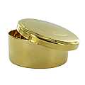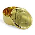 Scatola per particole in ottone dorato con incisione del monogramma IHS. Misure: diametro 7,7 cm, altezza 4 cm. Realizzato in Italia.