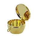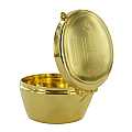 Teca alta con incisione del monogramma IHS. Misure: diametro 5,4 cm, altezza 3,2 cm. Realizzato in Italia.