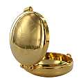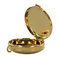 Teca eucaristica in metallo dorato con incisione IHS sul coperchio. E' completa di anello per portarla al collo.Altezza: 1 cm Diametro interno: 4 cm Capacità: 5 ostie Peso totale con scatola gr. 47 senza scatola gr. 26Realizzato in Italia