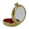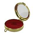 Portareliquie rotonda con diametro di 4 cm. L'alloggiamento, con fondo rosso in tessuto, ha una profondità di circa 14mm e una finestra tonda trasparente di 3,2 cm di diametro. Realizzato in Italia.