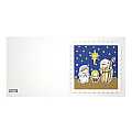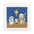 Questi due biglietti d'auguri per Natale, in cartoncino bianco e colorato, sono realizzati completamente a mano. Grazie alla resistenza e all'alta qualità dei materiali, sono adatti anche ad essere inviati tramite posta. Sono creati mediante la sovrapposizione di diversi strati di cartoncino e risultano di forte impatto. Uno appare più classico, con la scritta rossa in corsivo scolastico "Buon Natale" e la Sacra Famiglia nella capanna, in cartoncino bianco intagliato e applicato su sfondo rosso. Sul lato destro, un cordoncino bianco e rosso annodato a fiocco rende il biglietto più bello. Nell'altro, senza alcuna scritta, Maria e Giuseppe adorano Gesù Bambino sotto un cielo stellato, in cui la stella cometa si staglia luminosa. La rappresentazione vanta una suggestiva tridimensionalità, grazie alle stelle gialle intagliate nel cartoncino blu che sembrano in lontananza rispetto alle altre figure che, in rilievo, appaiono in primo piano. Il biglietto può anche essere esposto come piccolo presepe. Questi biglietti di auguri natalizi con decorazioni in rilievo misurano 13,5x13,5 cm e sono interamente realizzati a mano in Italia con cartoncino liscio a finitura opaca del peso di 240 g/m, colorati con pennarelli a base alcolica. Sul lato destro della parte interna del biglietto c'è un cartoncino bianco liscio a finitura semilucida dove scrivere gli auguri. Ogni biglietto è dotato di busta bianca (cartoncino da 120 g/m, 14x14cm).