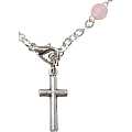 Braccialetto rosario con 11 grani e croce di altezza 1,5 cm Le palline sono di colore rosa chiaro.La circonferenza del braccialetto è 20 cm e il peso 2,6 gr.Il prodotto è stato realizzato in Italia da artigiani.Realizzato in italia.
