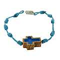 Braccialetto decina con croce ulivo smaltata-azzurro