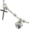 Bracciale in argento 925 con grani tondi mm 1 e pendenti a forma di croce e cuore