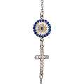 Braccialetto in argento con bagno in oro bianco con croce e medaglia strass bianchi e blu