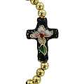 Braccialetto con elastico cloisonnè con 21 grani e croce di colore nero
