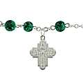 Braccialetto con palline in vetro maculato di colore verde con diametro 6 mm e croce di altezza 2 cm.La Croce, in metallo ossidato, raffigura su entrambe le facce la Madonna Miracolosa, Sacro Cuore di Gesù, San Cristoforo, San Giuseppe con al centro la Cololmba, simbolo di pace e cristianità.La circonferenza del bracciale è 21 cm e il peso è 6,8 gr.Il prodotto è stato realizzato in Italia da artigiani i quali hanno prestato particolare attenzione e cura ai dettagli.MADE IN ITALY