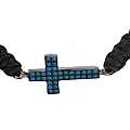 Braccialetto in corda con croce con strass azzuri in argento 925 con bagno oro bianco