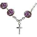 Braccialetto con grani in vetro pressato sfaccettato di colore ametista con fiori rilegato in argento.