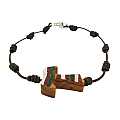 Braccialetto decina con croce tau in legno ulivo dipinta a righe