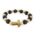 Braccialetto elastico con grani in legno bicolore e croce Tau - circonferenza 19 cm