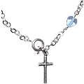 Braccialetto con 11 grani a forma di piccoli cuoricini di 0,5 cm in vetro azzurro.All'estremità è posta una piccola di croce di altezza 1,5 cm.Il prodotto è stato realizzato in Italia da artigiani i quali hanno prestato particolare attenzione e cura ai dettagli.Peso: 2,5 gr. Materiale: metallo e vetro