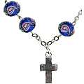 Braccialetto con grani di diametro 7 mm in vetro sfaccettato di colore bianco con fiori di colore rosa. Accanto al pater è posta una piccola croce liscia di misura 1,5 cm.La circonferenza del bracciale è 18,5 cm. Il prodotto è stato realizzato in Italia da artigiani i quali hanno prestanto particolare attenzione e cura ai dettagli.Materiale: vetro Peso: 13 gr.MADE IN ITALY
