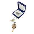 Collana in argento 925% con medaglia in porcellana raffigurante la madonna con il bambino stampati in color terra di siena. L'ovale di porcellana è incastonato in un profilo di argento lucido. Nella catena della collana sono inseriti due cuori in argento dorato ed il terzo è agganciato sotto alla medaglia stessa.La collana con chiusura a moschettone ha una circonferenza di 40 cm,misura che può essere aumentata grazie all'aggiunta di una catenella a maglia larga di circa 3 cm di lunghezza. La medaglia misura 2,5 cm. e il peso della collana è di 6,8 gr Il tutto è realizzato da un azienda italiana in esclusiva per la ditta che la presenta e verrà consegnata in una confezione molto pregiata.