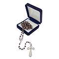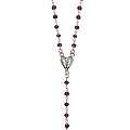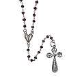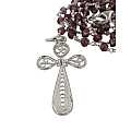 La collana con grani in ametista ha la legatura a mano a girello con filo in argento 925% rodiato,che conferisce alla collana stessa una particolare robustezza ed eleganza.La particolarità di questo articolo,che è disponibile anche con grani in giada o con zirconi neri,è dato dalla croce e dalla crocera in filigrana finemente lavorata a mano da artigiani italiani.Della stessa linea è disponibile anche il bracciale (articolo 0023BRAM).Il peso della collana è di grammi 5,6 gr.