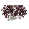 La collana con zirconi neri sfaccettati ha la legatura a mano a girello con filo in argento rodiato 925%,che conferisce alla collana stessa una particolare robustezza ed eleganza.La particolarità di questo articolo,che è disponibile anche con grani in giada o in ametista,è dato dalla croce e dalla crocera in filigrana finemente lavorata a mano da artigiani italiani.Della stessa linea è disponibile anche il bracciale (articolo 0023BRZI).Il peso della collana è di grammi 7,9 gr.