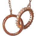 Collana in argento 925 con bagno in oro rosa con due anelli uno dentro l'altro.Un anello ha gli strass bianchi e l'altro è liscio, entrambi misurano 1x1 cm.Il gioiello misura complessivamente 2,4 gr.Realizzato interamente in Italia.