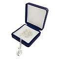 Spendida collana in argento 925 con ciondolo in cristallo a forma di cuore.La lunghezza della collana è 40 cm inclusa di chiusura.Il ciondolo, un cristallo a forma di cuore di 1 cm, crea degli affascinanti giochi di colori.Il peso complessivo è 2,3 gr. circa.Realizzato in Italia.