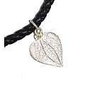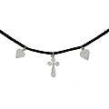 Girocollo in ecopelle nera con croce e cuori filigrana in argento