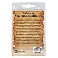 Il blister si presenta con all'interno un cartoncino, con la foto della Madonna dei Miracoli e sul retro è stampata una preghiera in italiano a lei dedicata.Applicata con gancietto vi è un piccolo ciondolo con la resina lucida della Madonna dei Miracoli e la perla che ci ricorda la frase scritta sul cartoncino. *I colori della perla possono variare.Realizzato in Italia.