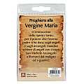 Il blister si presenta con all'interno un cartoncino, con la foto del S. Michele Arcangelo (a Monte S. Angelo-Puglia) e sul retro è stampata una preghiera a lei dedicata.Applicata con gancietto vi è un piccolo ciondolo con la resina lucida del S. Michele Arcangelo (a Monte S. Angelo-Puglia) e la perla che ci ricorda la frase scritta sul cartoncino.I colori della perla possono variare.Realizzato in Italia.