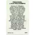 Questa immagine plastificata rappresenta San Pellegrino ed è impreziosita da una medaglia di metallo.La misura di questa card è di cm 5,5 x 8,5. Lingua: italiano. Materiale: PVC.Realizzato in Italia