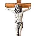 Croce realizzata in legno di ulivo con inserti in metallo dorato, mentre il corpo di Cristo è in metallo argentato.Il crocifisso è disponibile in diverse altezze:13 cm (articolo 163513)16 cm (articolo 163516)23 cm (articolo 163523)