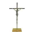 Crocifisso da tavolo in metallo con base di legno - 20 cm