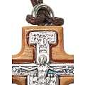 Croce San Damiano in metallo ossidato su legno ulivo con laccio - 2 x 1,6 cm