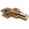 Questa croce in rilievo raffigura il Cristo apparso a San Francesco nella chiesa di San Damiano ad Assisi. Stampata su carta ed applicata su legno di pioppo con rilievo. L'immagine del crocifisso ha i bordi dei personaggi contornati color oro. Ideata per essere appesa alla parete. Realizzato in Italia.Il prodotto è disponibile in altre misure:- 10 x 8 cm (codice 151501)- 16,5 x 12,5 cm (codice 151502)- 42 x 31,5 cm (codice 151504)