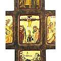 Croce con icone delle scene della vita di Gesù e Maria, Icona in Stile Arte Bizantina, Icona su Legno Rifinita con Aureole, Scritte e Bordure Fatte a Mano, Produzione Greca - 26,5 x 22 Cm