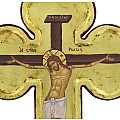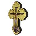 L'icona a forma di croce, dalle terminazioni trilobe, è profilata a mano in color bordeaux e celebra il Cristo morente. L'opera, una copia d'arte bizantina, è composta da una fine litografia incollata su legno e rifinita a mano: lo sfondo, impreziosito con foglia d'oro, è reso ancora più bello da scritte e aureole realizzate a mano di color rosso e da un effetto anticato. Lo spessore della croce icona, il suo bordo in rilievo dalla generosa smussatura e le sue estremità, che ricordano il trifoglio greco, fanno risaltare ulteriormente le forme e l'impatto visivo di questa croce da parete. Il gancio posteriore, infatti, consente di appenderla comodamente al muro. Il retro reca una certificazione che attesta le caratteristiche produttive di questa pregevole icona a croce, realizzata in Grecia. Il peso della croce è di 278 gr.