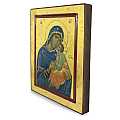 Icona Madonna della Tenerezza, Icona in Stile Arte Bizantina, Icona su Legno Rifinita con Aureole, Scritte e Bordure Fatte a Mano, Produzione Greca - 25 x 20 Cm