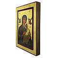 Icona Perpetuo Soccorso (Madonna della Passione), Icona in Stile Arte Bizantina, Icona su Legno Rifinita con Aureole, Scritte e Bordure Fatte a Mano, Produzione Greca - 23,5 x 17,5 Cm