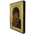 Icona Volto della Tenerezza, Madonna di Vladimir, Icona in Stile Arte Bizantina, Icona su Legno Rifinita con Aureole, Scritte e Bordure Fatte a Mano, Produzione Greca - 25,5 x 19 Cm