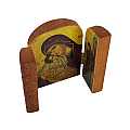 Trittico Madonna di Vladimir, Icona in Stile Arte Bizantina, Icona su Legno Rifinita con Aureole, Scritte e Bordure Fatte a Mano, Produzione Greca - 10 x 7 Cm
