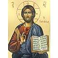 Icona raffigurante il Cristo con il libro aperto dipinta a mano su legno con fondo oro cm 19x26.Icone dipinte da Liviu Balac (pittore di icone da oltre 30 anni), con tecniche bizantine.L'icona verrà consegnata con certificato di garanzia del pittore e inscatolata in una confezione regalo.Il legno utilizzato per l'icona stessa è abete, con umidità del 10/11% circa.L'icona è prodotta totalmente in Romania.