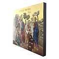 Icona raffigurante la Ditribuzione Pani Pesci dipinta a mano su legno con fondo oro cm 26x32.Icone dipinte da Liviu Balac (pittore di icone da oltre 30 anni),con tecniche bizantine.L'icona verrà consegnata con certificato di garanzia del pittore e inscatolata in una confezione regalo.Il legno utilizzato per l'icona stessa è abete, con umidità del 10/11% circa.L'icona è prodotta totalmente in Romania.