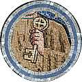 La tavola che rappresenta San Pietro si presenta con colori vivaci ed il tipo di lavorazione ricorda il mosaico. Sotto l'immagine del Santo vi è il simbolo con cui è ricordato.La decorazione gialla che vediamo è fatta con colori a caldo ad effetto metalizzato, si presenta in una busta trasparente dello stesso formato della tavola. Sul retro vi è un foro che permette di appenderla.La misura è di cm 10 x 27 ed il peso è di gr 300.Realizzato in Italia.
