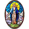 La tavola ad arco che rappresenta la Madonna Miracolosa ha colori vivaci ed il tipo di lavorazione ricorda le vetrate in stile gotico. La decorazione che attornia l'apparizione, è dorata ed eseguita con oro lucido, così il bordo che attornia la tavola stessa. Si presenta in una busta trasparente dello stesso formato della tavola.Sul retro vi è un foro che permette di appenderla. La misura è di cm 10 x 27 ed il peso è di gr 300. Realizzato in Italia.