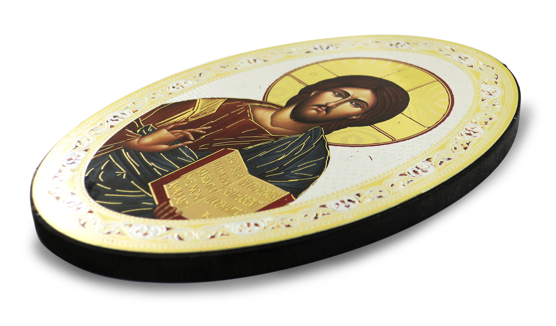 Icona Cristo con Libro Aperto stampa su legno ovale - 12 x 18 cm